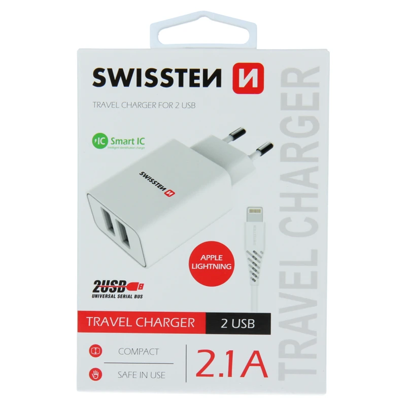 The Swissten SMART IC network adapter has 2 USB ports and a total output current of 2.1A. So you can easily charge two devices at once. Thanks to SMART IC moreover optimally distributes the output current from each device charging. Package contains 1.2m USB / LIGHTNING data cable. Color white. Packed in Swissten retail pack.